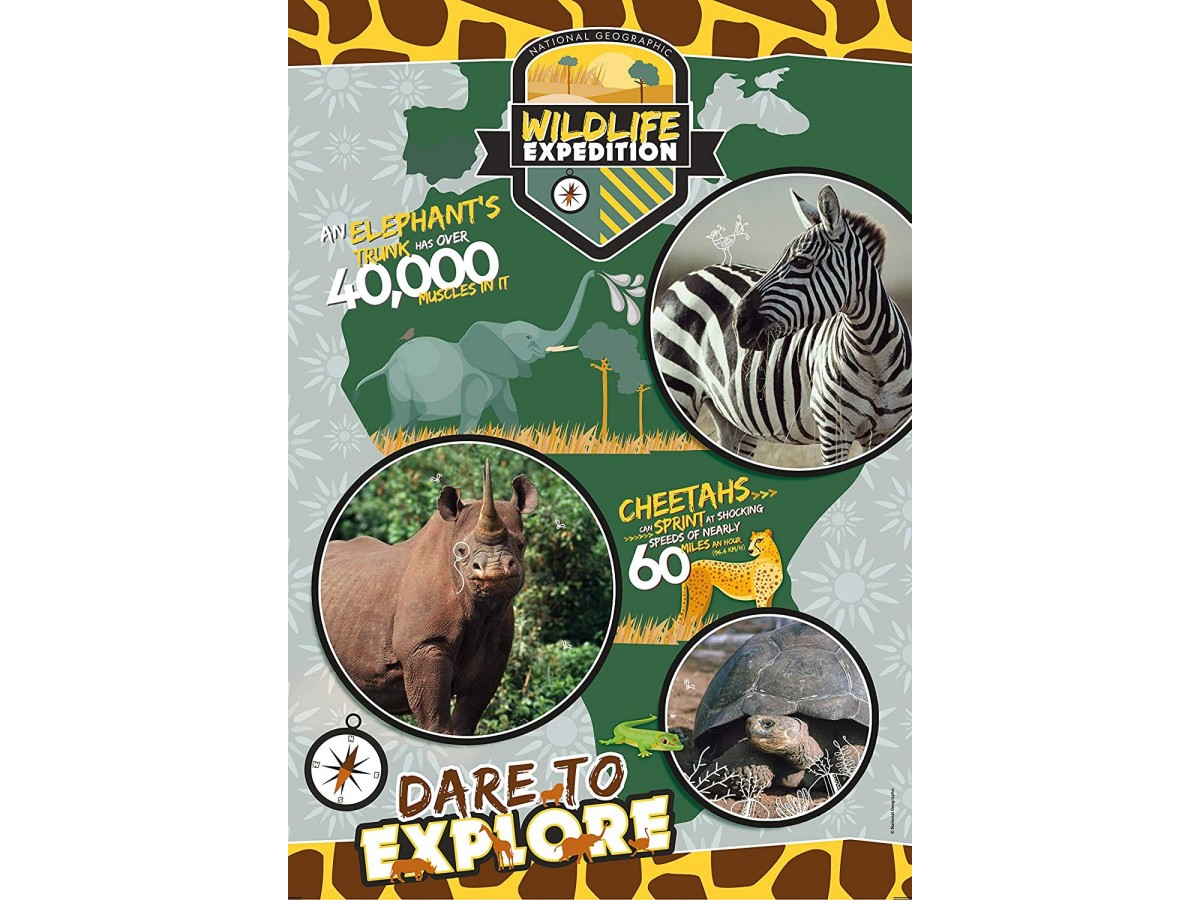 Puzzle-ul cu 180 piese National Geo Kids - Wildlife Expedition este o alegere excelentă pentru dezvoltarea abilităților de rezolvare a problemelor și concentrare a copiilor. Ilustrațiile captivante și detaliile realiste ale animalelor vor fascina micuții exploratori și îi vor transporta într-o aventură captivantă în sălbăticie.