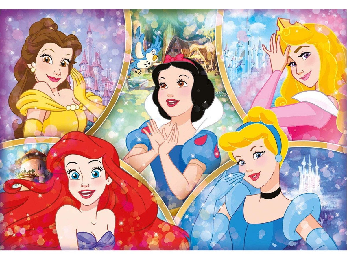 Imaginea acestui puzzle cu 180 piese XXL Clementoni - Disney Princess (Clementoni-29311) redă cinci dintre cele mai îndrăgite prințese Disney, fiecare exprimând diferite emoții de bucurie și visare. Belle, Ariel, Alba-ca-Zăpada, Aurora și Cenușăreasa sunt reprezentate în detalii vibrante, fiecare cu trăsăturile sale distincte și recunoscute. Fundalul este decorat cu siluete magice ale unor castele, amplificând atmosfera magică a ilustrației.