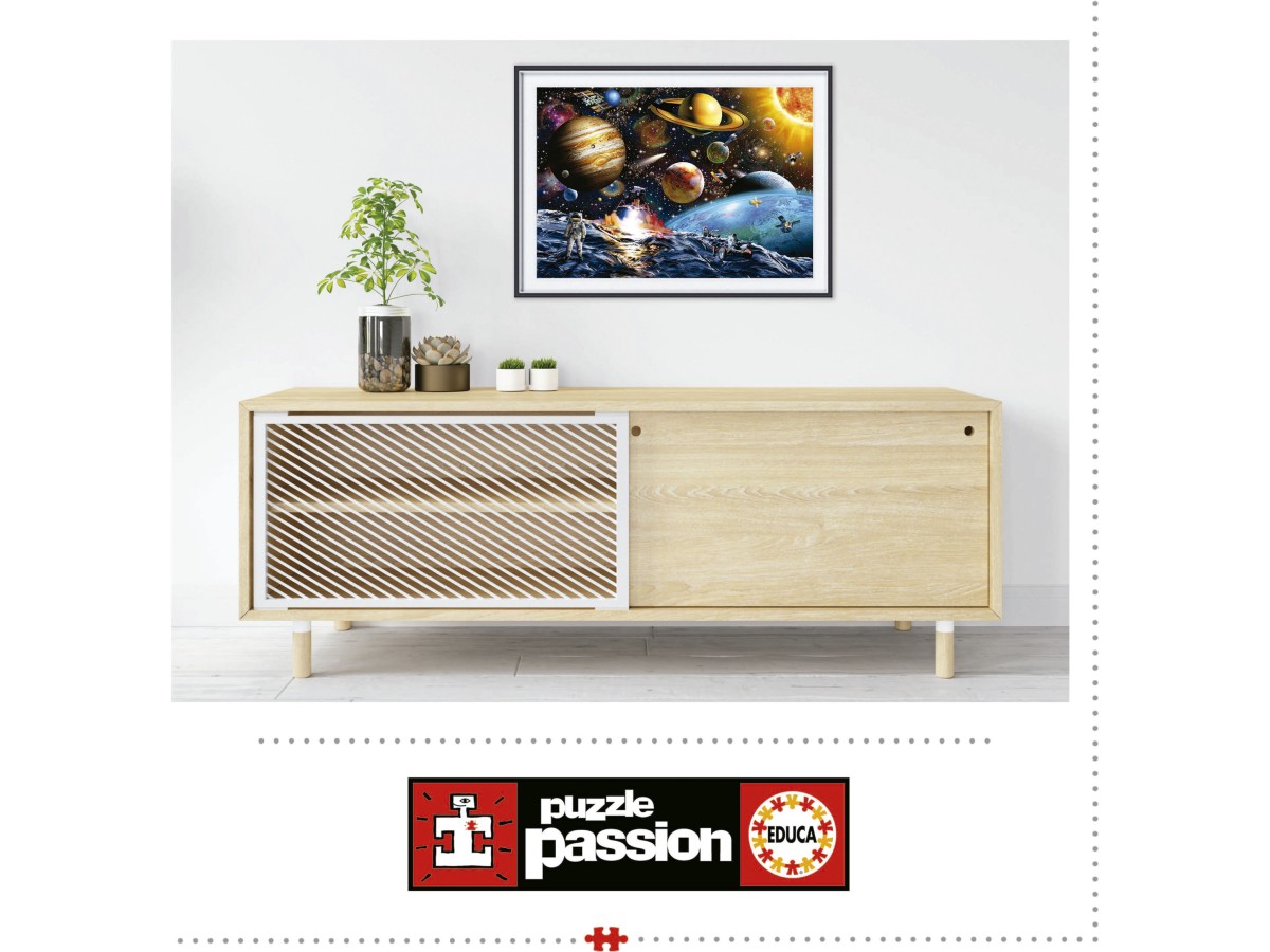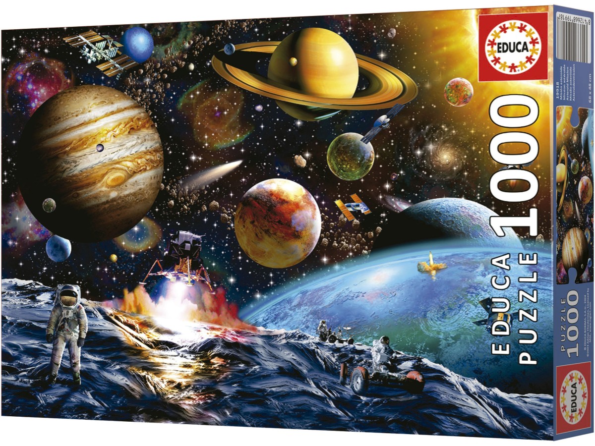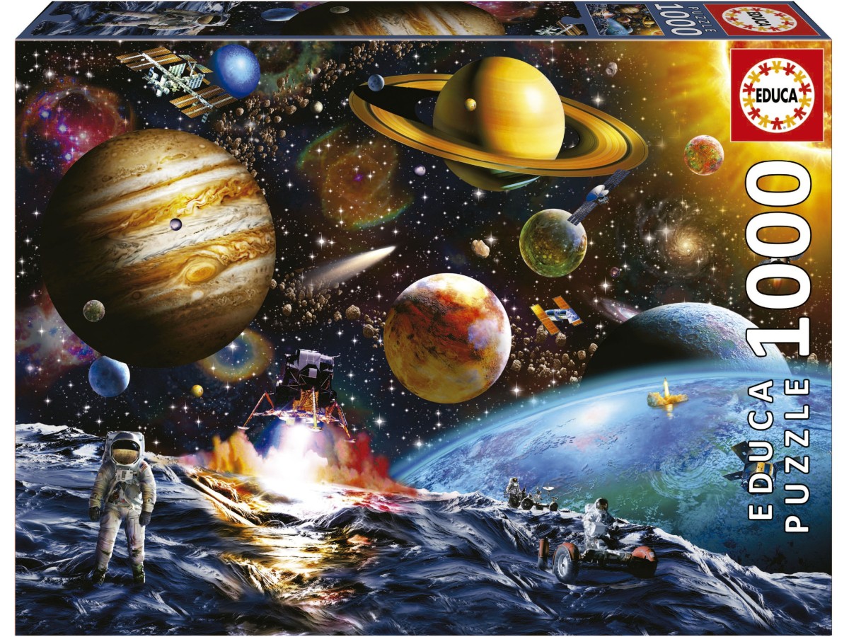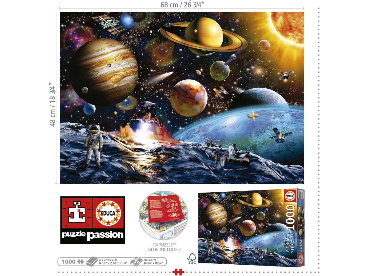 Puzzle-ul are dimensiunile de 68 x 48 cm și este potrivit pentru adulți. Brandul Educa este cunoscut pentru calitatea pieselor sale și pentru ilustrațiile captivante pe care le oferă. Cu cele 1000 de piese, acest puzzle oferă o provocare interesantă pentru pasionații de aventuri spațiale și de explorarea cosmosului.