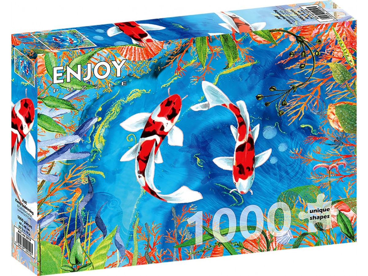 Această frumoasă imagine este transformată într-un puzzle de 1000 de piese, perfect pentru adulți pasionați de provocările complexe și detaliile intricate. Realizat de brandul Enjoy, acest puzzle oferă ore de distracție și relaxare, în timp ce îți pui la încercare abilitățile de rezolvare a puzzle-urilor. Dimensiunile puzzle-ului sunt de 68 x 48 cm, perfecte pentru a te bucura de fiecare detaliu al ilustrației cu pești koi și vegetație acvatică.
