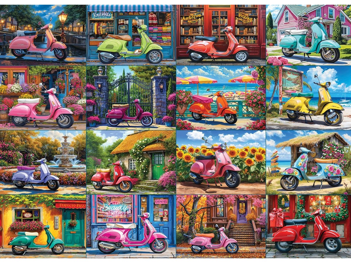 Colajul de scutere este realizat cu atenție la detalii, oferind o varietate de scene interesante și pline de viață. Fiecare piesă se potrivește perfect alături de celelalte, contribuind la construirea unei imagini complete și captivante. Puzzle-ul pentru adulți este o modalitate excelentă de a petrece timpul liber, relaxându-te și exersându-ți concentrarea și răbdarea.