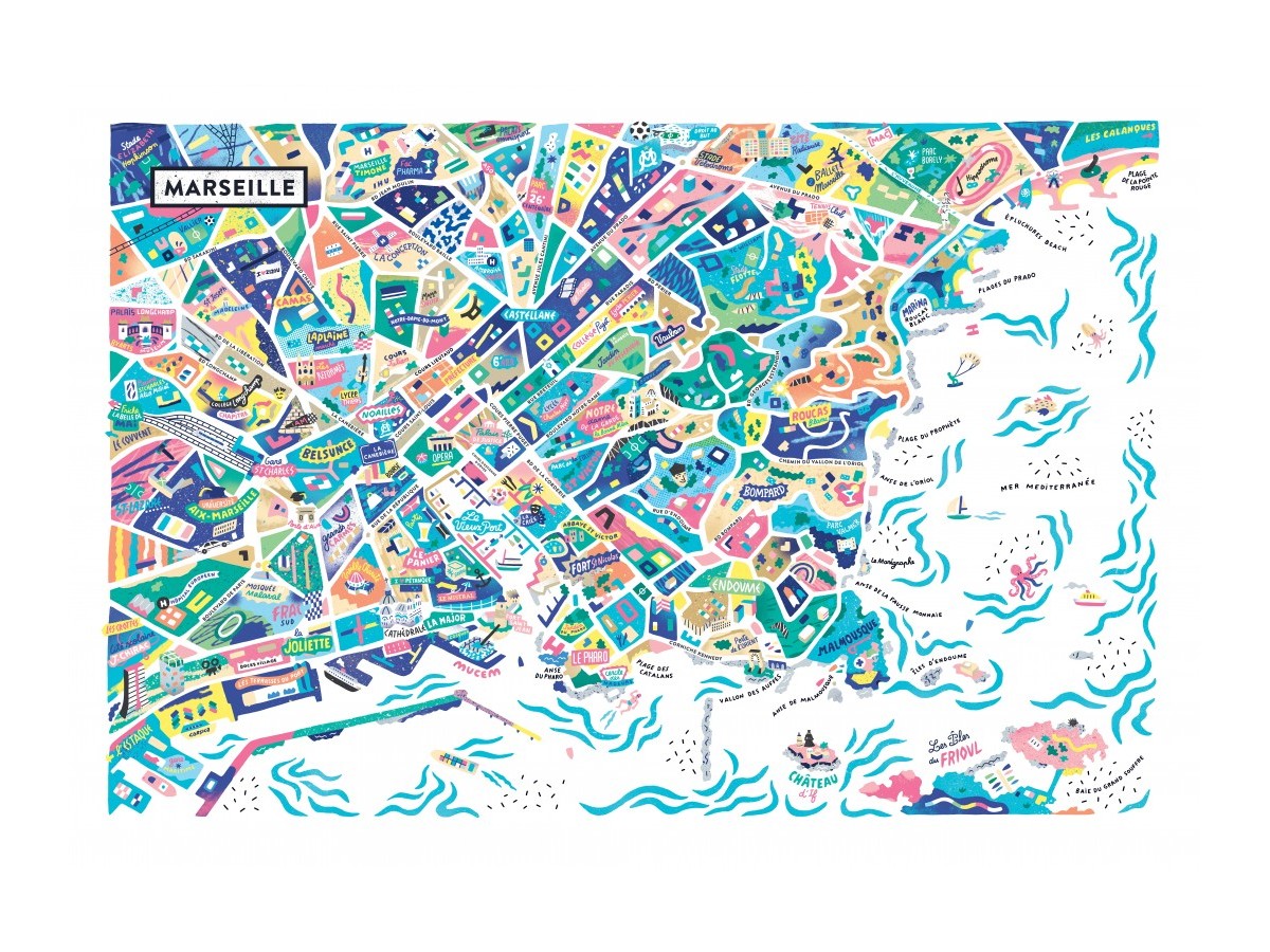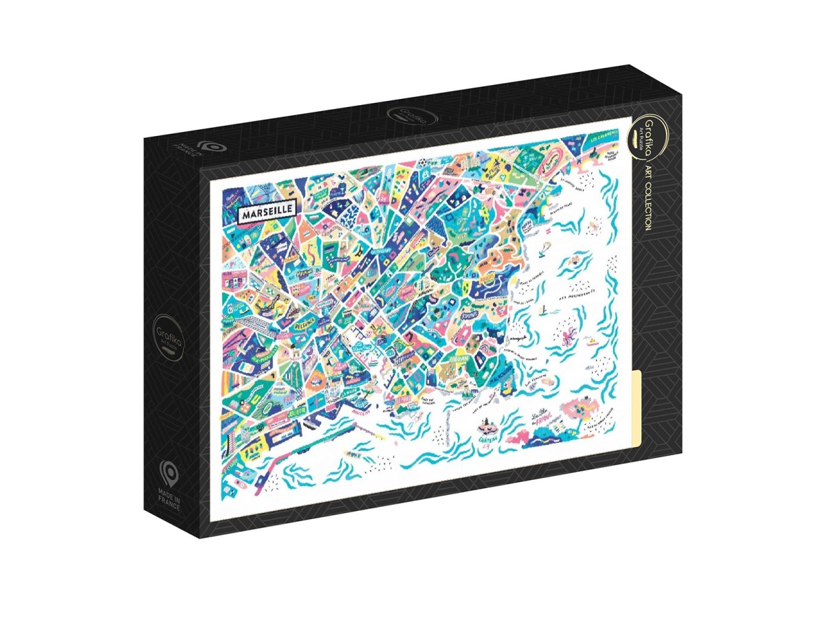 Imaginea puzzle-ului reprezintă o hartă colorată și stilizată a orașului Marseille, creată de artistul Antoine Corbineau. Străzile și cartierele sunt conturate în mod vibrant, folosind o gamă largă de culori și forme care atrag privirea, sugerând un oraș plin de viață și diversitate culturală. Zona costieră este evidențiată prin nuanțe intense de albastru, ilustrând diverse ambarcațiuni și activități acvatice, subliniind legătura orașului cu Marea Mediterană.