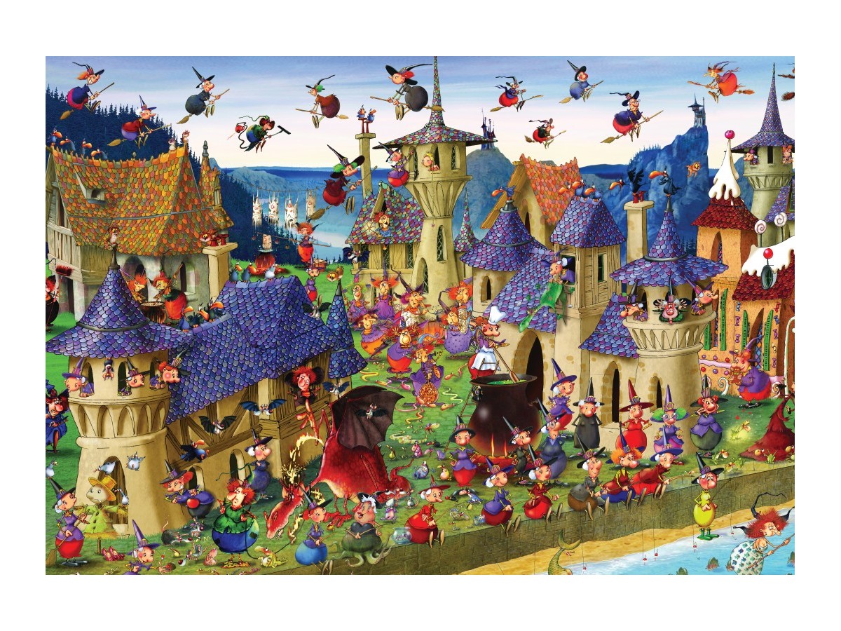 Ilustrația digitală realizată de François Ruyer surprinde fiecare element al scenei festivalului vrăjitoarelor cu o precizie uimitoare, permitându-le celor care asamblează puzzle-ul să se bucure de fiecare detaliu minuțios pus în valoare. Atmosfera magică și plină de viață a imaginii va captiva și inspira pe oricine îndrăznește să se aventureze în lumea fermecată a acestui puzzle.
