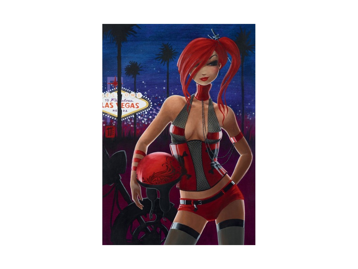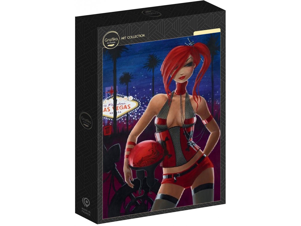 Acest puzzle cu 1000 piese de la brandul Grafika prezintă o ilustrație vibrantă realizată de Misstigri, ce surprinde o femeie sigură pe sine într-un decor urban și nocturn. Femeia are părul roșu aprins și poartă o ținută provocatoare, amestecând elemente sportive cu accente futuristice. În fundal se remarcă lumini neon și palmieri, specifici unei nopți agitate în Las Vegas, evidențiat de semnul „Welcome to fabulous Las Vegas”. Ilustrația transmite un aer dinamic și modern, reflectând stilul vibrant și plin de viață al orașului.