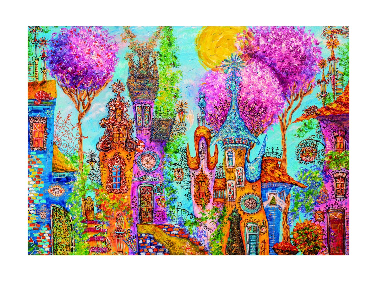 Recomandat pentru adulții dornici de relaxare și concentrare, puzzle-ul 'Pink Trees' aduce în prim-plan o poveste vizuală plină de culoare și farmec. Ilustrația digitală detaliată, realizată de Tatyana Murova, surprinde un tablou urban fermecător, unde arhitectura și natura se împletesc într-o armonie captivantă. Fiecare piesă asamblată aduce participantului o satisfacție aparte, dezvăluind treptat peisajul bogat în detalii și culori vibrante.
