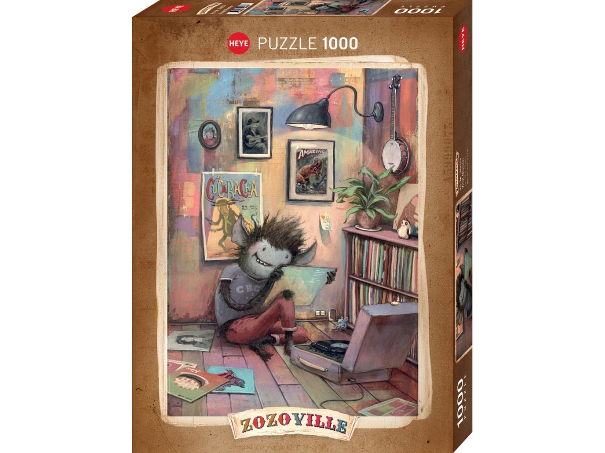 Imaginea puzzle-ului prezintă un personaj fictiv, un monstru adorabil cu o textură păroasă, stând pe podea și ținând un disc de vinil. În jurul său se observă cărți, alte discuri de vinil și o lămpă de birou, creând o atmosferă intimă. Pereții sunt decorați cu postere și tablouri, contribuind la atmosfera artistică a camerei, cu nuanțe predominante de roz, albastru și verde.