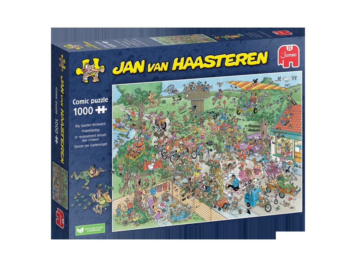 Puzzle-ul Big Garden Birdwatch de la Jumbo este format din 1000 de piese și are dimensiunile de 68 x 49 cm. Recomandat pentru adulți, acest puzzle captivant oferă ore de distracție și provocare, fiind potrivit atât pentru cei pasionați de observarea naturii, cât și pentru cei care apreciază ilustrațiile pline de detalii și umor ale lui Jan van Haasteren. Brandul Jumbo se remarcă prin calitatea materialelor folosite și atenția la detalii, garantând o experiență plăcută și satisfăcătoare pentru orice iubitor de puzzle-uri.