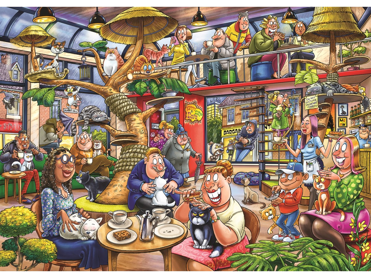 Puzzle 1000 piese Jumbo - Wasgij Mystery 28 - Feline Frenzy! (1000 pieces) (Jumbo-00506)