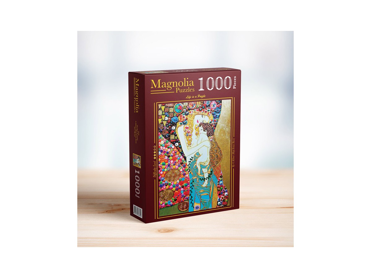 Această puzzle Magnolia cu 1000 piese cu tema 'Mother & Child' aduce o experiență captivantă pentru adulți. Cu dimensiunile de 68 x 48 cm, acest puzzle oferă o provocare distractivă și relaxantă, potrivită pentru pasionații de puzzle-uri. Brandul Magnolia este cunoscut pentru calitatea produselor sale, iar această imagine cu influențe klimtiene nu face excepție.