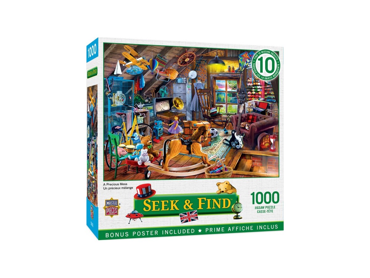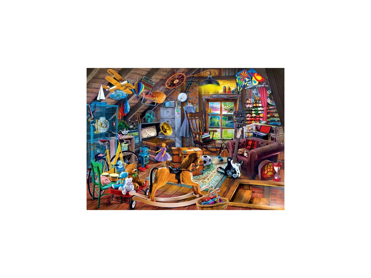 Ilustrația digitală reprezentată pe puzzle-ul 'A Precious Mess' surprinde privitorul cu o varietate de elemente interesante, de la cărți vechi și obiecte decorative, până la instrumente muzicale și jucării amuzante. Detaliile bogate ale imaginii încurajează explorarea atentă a fiecărui colț al acestei camere imaginare, oferind o experiență de asamblare captivantă și plină de satisfacție.
