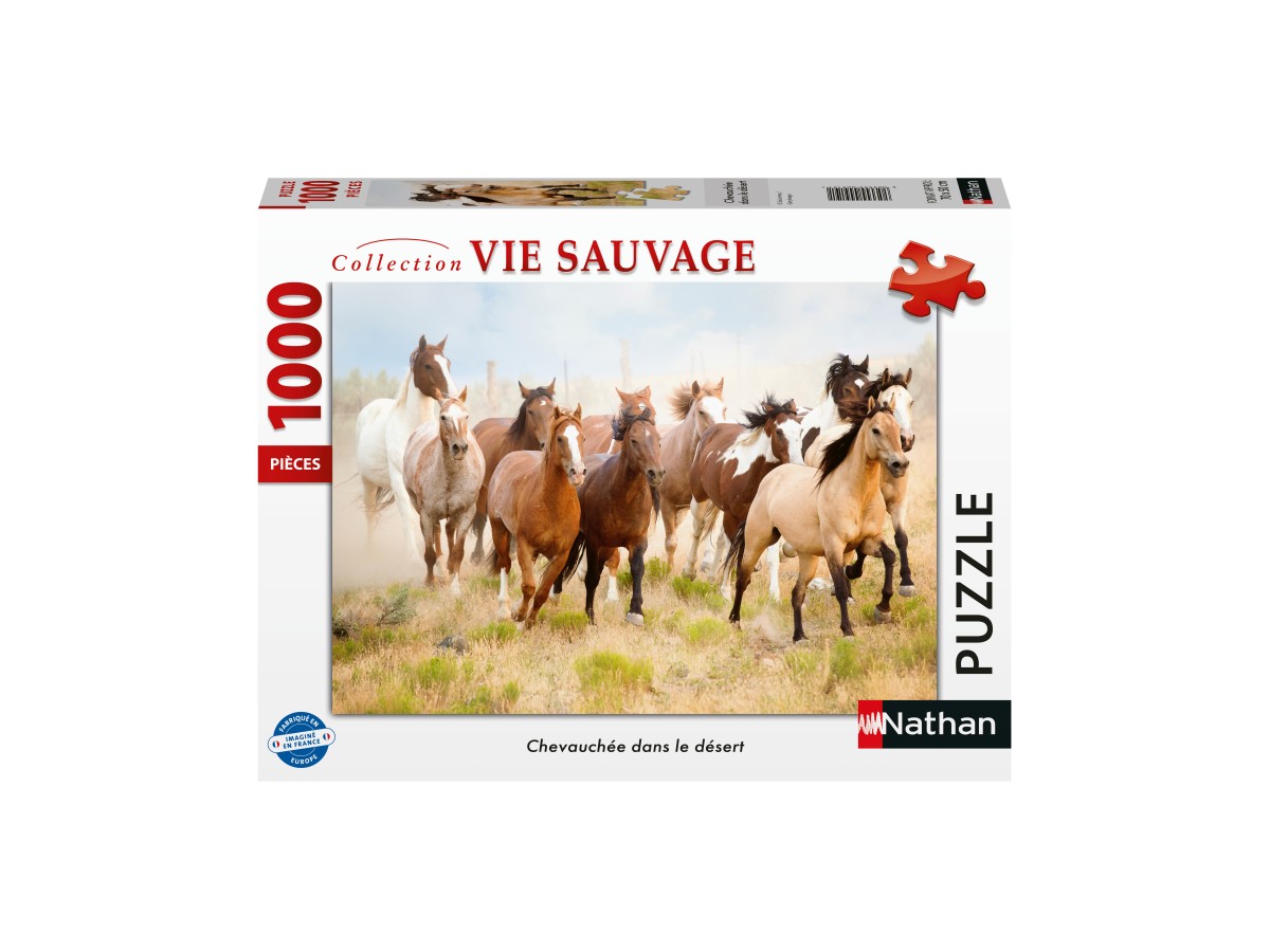 Acest puzzle Nathan conține 1000 piese și are dimensiunile de 70 x 50 cm, oferind o experiență captivantă și satisfăcătoare pentru adulți. Ilustrația vibrantă surprinde esența vieții în sălbăticie, evocând libertatea și frumusețea naturii neatinse.