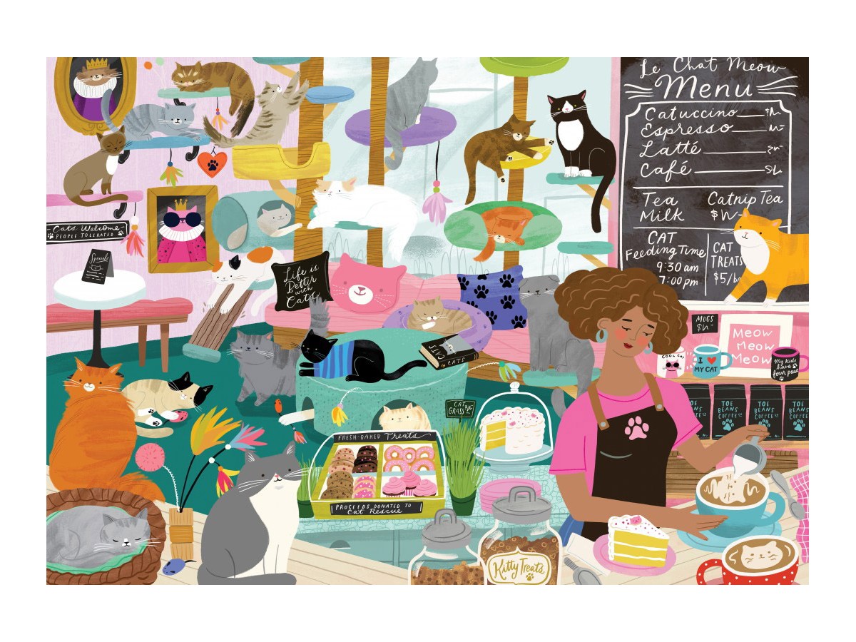 Puzzle 1000 piese Pieces & Peace - My Happy Place is in the Cat Cafe (Pieces-Peace-F-00171)