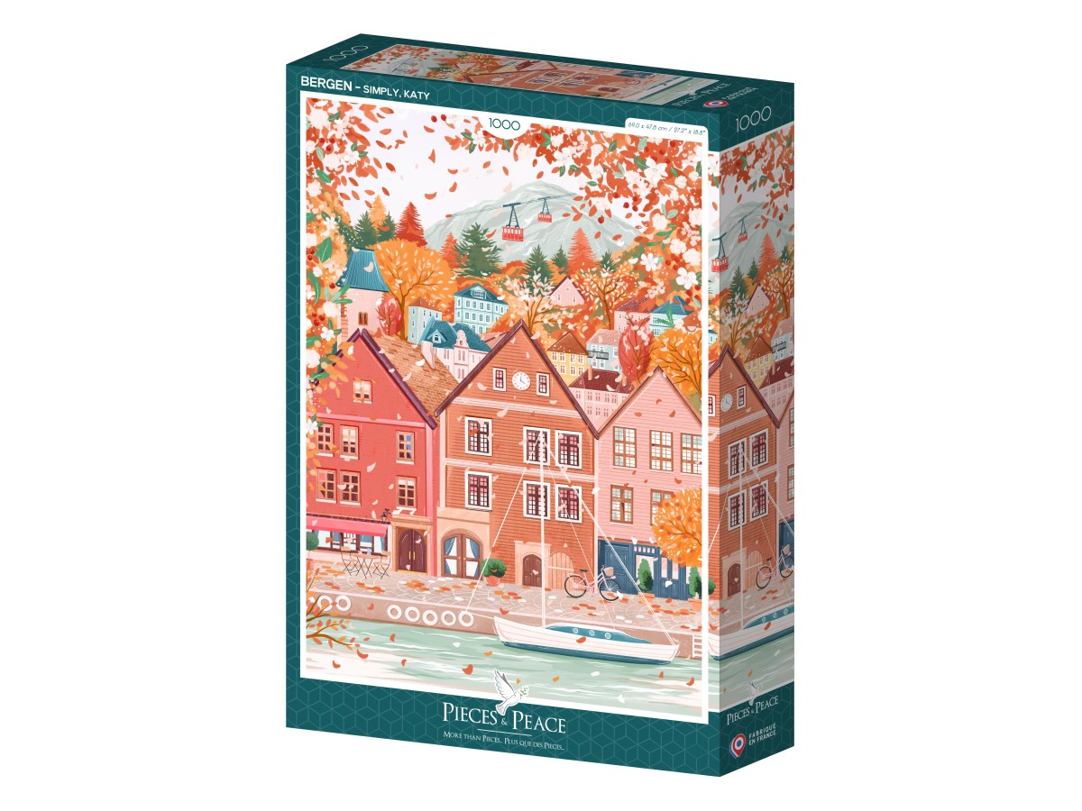 Puzzle-ul Pieces & Peace cu 1000 piese Simply Katy: Bergen este o provocare perfectă pentru pasionații de puzzle-uri adulți. Cu dimensiunile sale de 69 x 47,8 cm, acest puzzle captivant aduce în prim-plan detaliile bogate ale unui peisaj urban vibrant, ideal pentru relaxare și concentrare. Brandul Pieces & Peace se remarcă prin calitatea materialelor și a tipăririi, garantând o experiență de asamblare plăcută și satisfăcătoare.