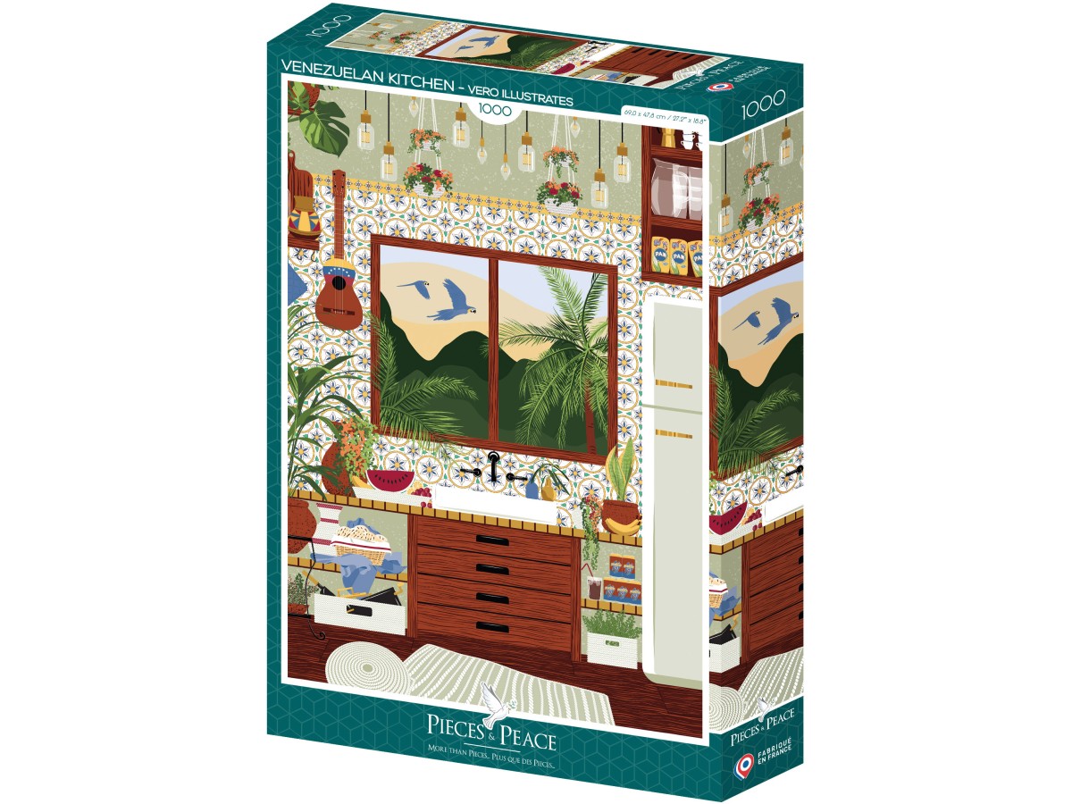 Puzzle-ul Pieces & Peace cu 1000 piese Venezuelan Kitchen este un produs de calitate superioară, potrivit pentru adulți pasionați de puzzle-uri complexe. Dimensiunile acestuia sunt de 69 x 47,8 cm, oferind o experiență captivantă și satisfăcătoare în timpul asamblării.