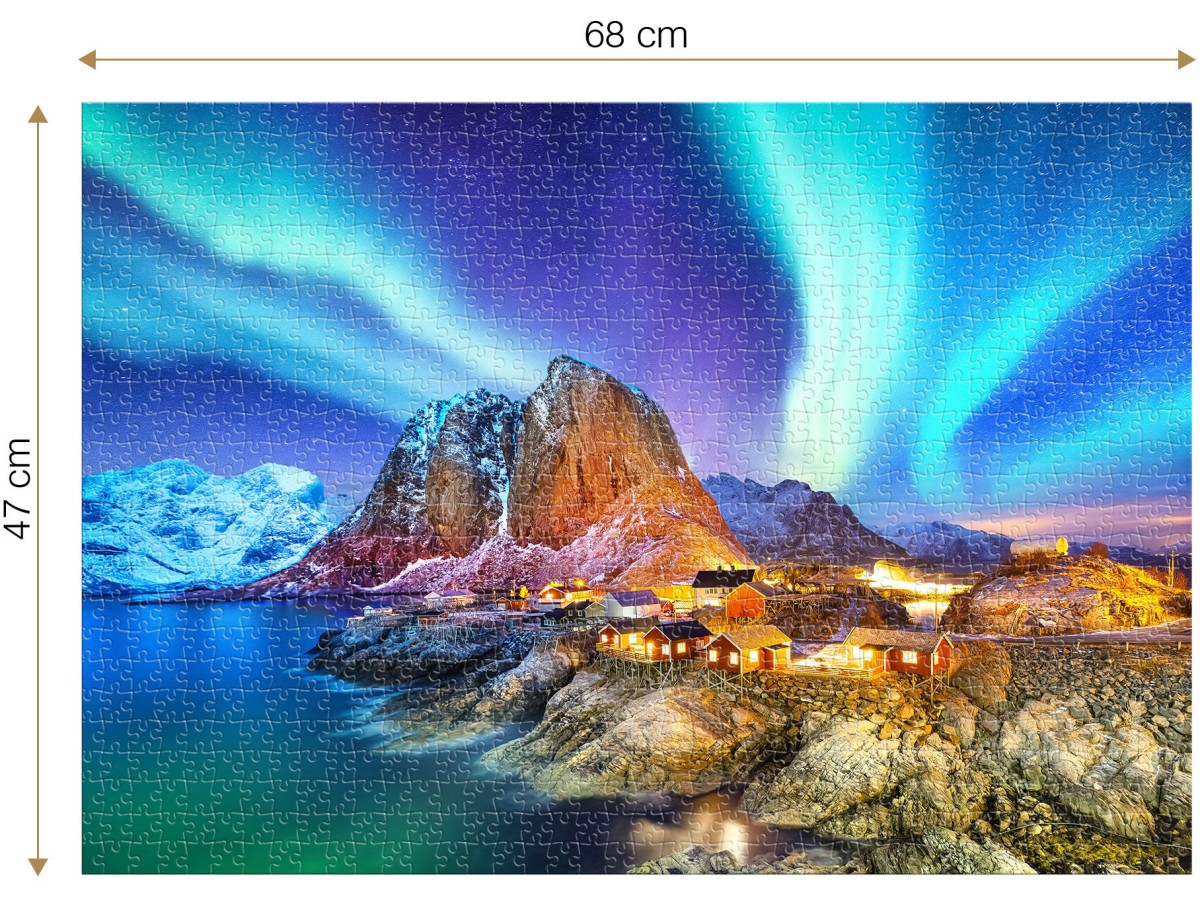 Ilustrația digitală detaliată și vibrantă a peisajului din Norvegia aduce în prim-plan frumusețea naturii și a fenomenelor unice, precum aurorele boreale, creând un tablou uimitor de lumină și culoare. Recomandat pentru adulții dornici să-și testeze abilitățile și răbdarea, acest puzzle este o modalitate excelentă de relaxare și distracție, oferind ore de divertisment creativ și satisfacție la finalizarea lui.