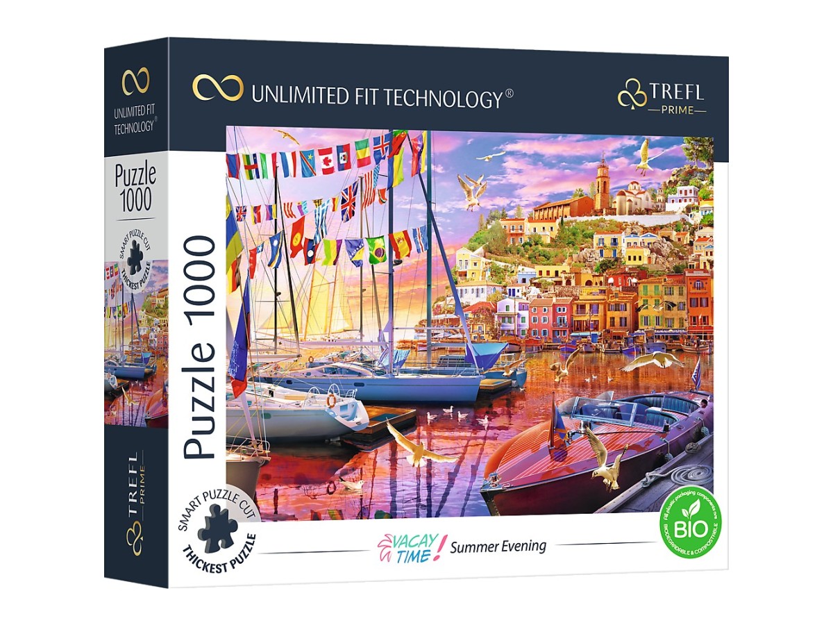 Asamblarea acestui puzzle cu tema de vară va transporta cu siguranță jucătorii într-o atmosferă plină de bucurie și frumusețe, punându-le la încercare abilitățile de rezolvare a puzzle-urilor și oferindu-le ore de distracție creativă. Descoperă frumusețea unui port plin de viață și culoare cu puzzle-ul Trefl Vacay Time: Summer Evening!