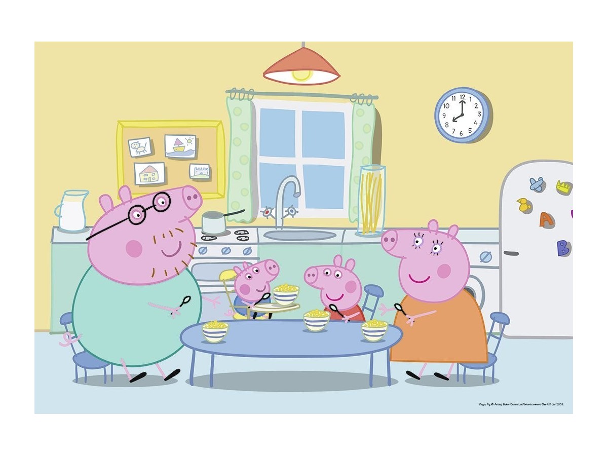 Copiii vor fi încântați să reconstituie această scenă drăguță cu personajele lor preferate din Peppa Pig. Ilustrația digitală detaliată capturează momentul plin de bucurie din sufrageria familiei Pig, punând în valoare relațiile calde și muzica veselă. Puzzle-ul este ideal pentru a fi rezolvat în familie sau alături de prieteni, consolidând legăturile și stimulând colaborarea și concentrarea.