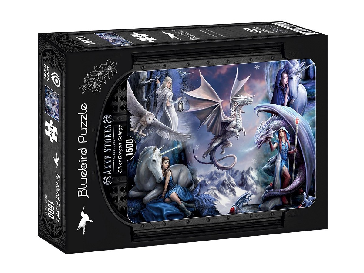 Această piesă de puzzle cu 1500 piese de la Bluebird cu tema Anne Stokes: Silver Dragon Collage este destinată exclusiv adulților, oferindu-le o provocare complexă și relaxantă în același timp. Dimensiunile puzzle-ului sunt de 85 x 61 cm, ceea ce îl face potrivit pentru a fi completat în câteva sesiuni lungi de relaxare sau chiar ca un proiect de colaborare în familie sau cu prietenii.