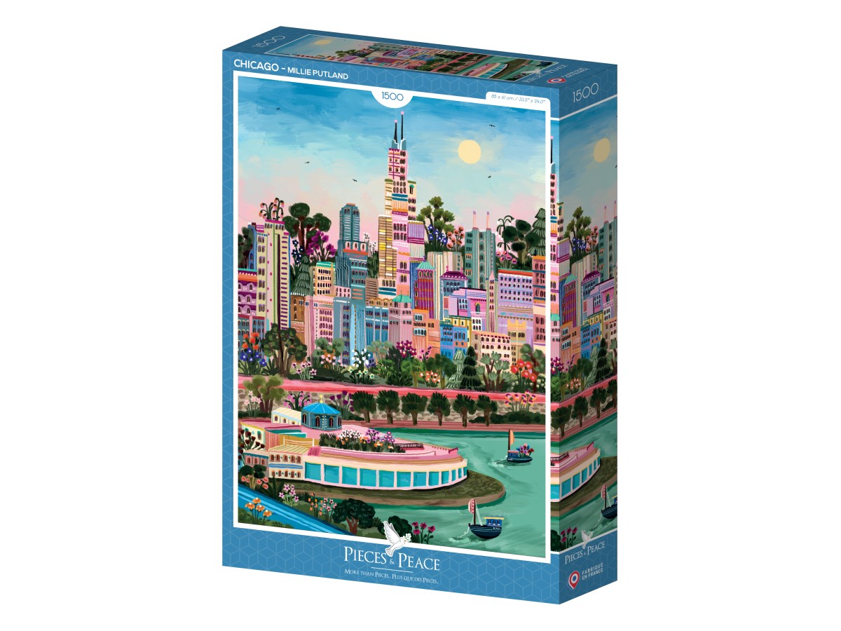 Puzzle-ul 1500 piese Pieces & Peace - Putland Millie: Chicago este destinat exclusiv adulților, fiind o activitate potrivită pentru relaxare și concentrare. Cu o ilustrație digitală deosebit de colorată și vibranta, acest puzzle reprezintă o alegere excelentă pentru pasionații de puzzle-uri și pentru cei care doresc să-și petreacă timpul liber într-un mod creativ și distractiv.