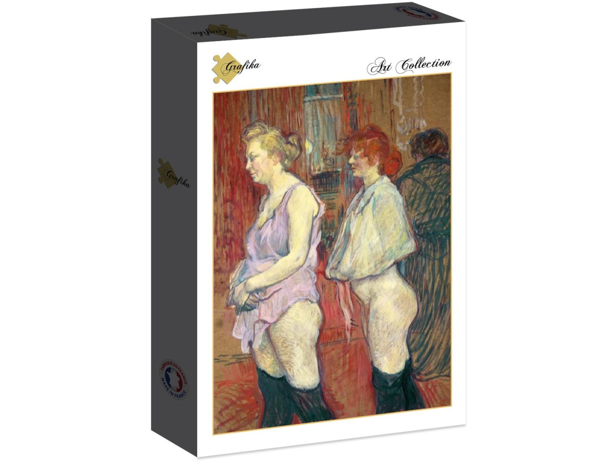 Puzzle-ul cu 2000 piese Grafika ilustrează o remarcabilă pictură realizată de Henri de Toulouse-Lautrec, intitulată 'Rue des Moulins, 1894'. Imaginea surprinde două femei, posibil dansatoare sau lucrătoare într-un cabaret parizian, evidențiind contrastul dintre exprimarea directă și anonimatul uneia dintre personaje.