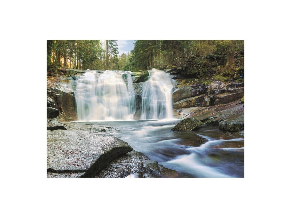 Imaginea surprinsă pe puzzle-ul Dino 500 piese Mumlava Waterfalls te transpune într-un peisaj spectaculos, cu cascada Mumlava din Parcul Național Munții Krkonoše, Republica Cehă. Fotografia captivanta surprinde cascada într-un moment dinamic, cu apa care se revarsă peste pragurile de piatră și se scurge într-un râu tumultuos. Copacii înalți încadrează scena, adăugând o notă naturală și sălbatică compoziției. Culorile vii ale apei, combinate cu nuanțele verzi ale vegetației și texturile rocilor, conferă puzzle-ului o profunzime și un realism impresionant.