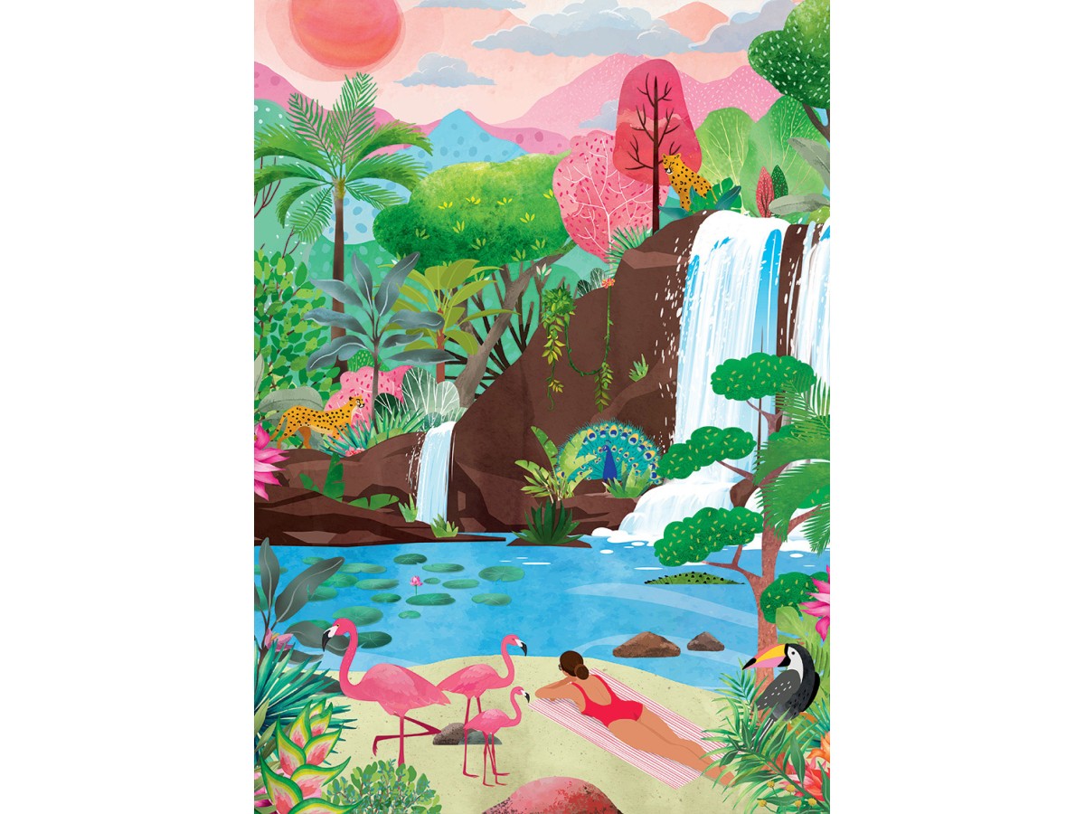 Ilustrația digitală a acestei teme Pieces & Peace surprinde perfect esența unui peisaj exotic, plin de viață și culoare. De la flamingo roz la cascada impunătoare și la nuanțele vibrante ale vegetației tropicale, fiecare detaliu este pus în valoare pentru a crea o atmosferă de vis și evadare. Cu fiecare piesă plasată la locul ei, imaginea prinde viață, oferind o satisfacție inegalabilă și un moment de relaxare pentru fiecare participant.
