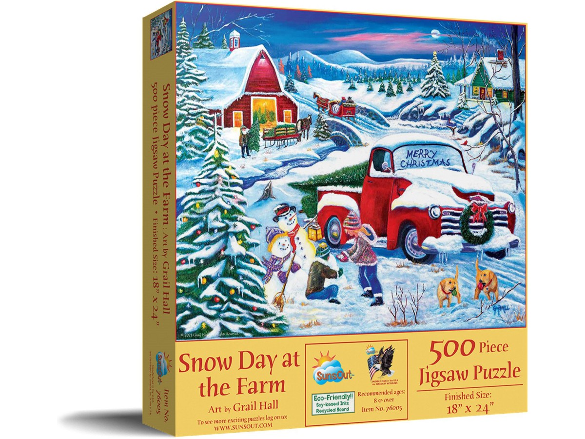 Puzzle 500 piese XXL SunsOut - Jour de Neige a la Ferme (Sunsout-76005)