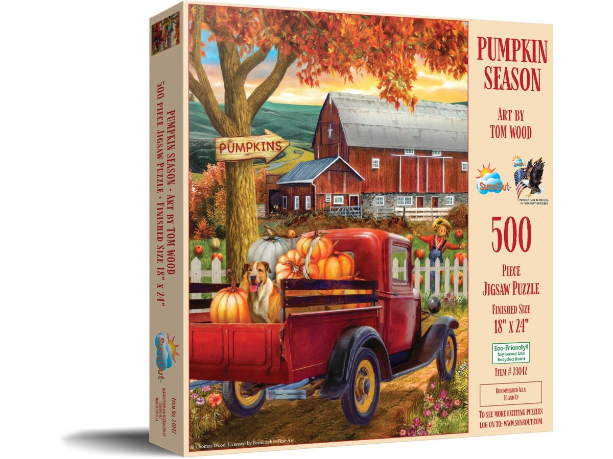Puzzle-ul SunsOut 'Pumpkin Season' este alcătuit din 500 de piese XXL, având dimensiunile de 61 x 45,72 cm. Acest puzzle este destinat exclusiv adulților, fiind ideal pentru relaxare și concentrare. Brandul SunsOut este recunoscut pentru calitatea și diversitatea puzzle-urilor sale, oferind mereu imagini captivante și detaliate.