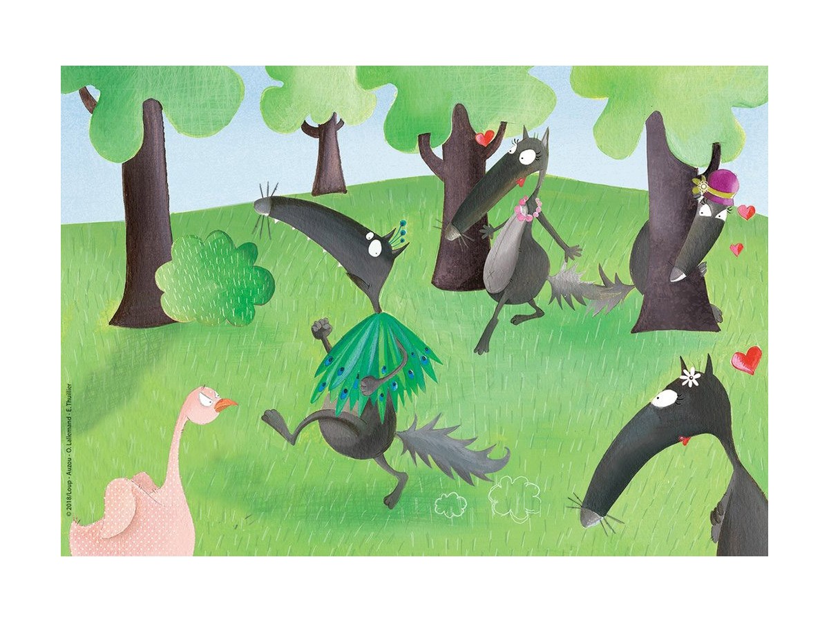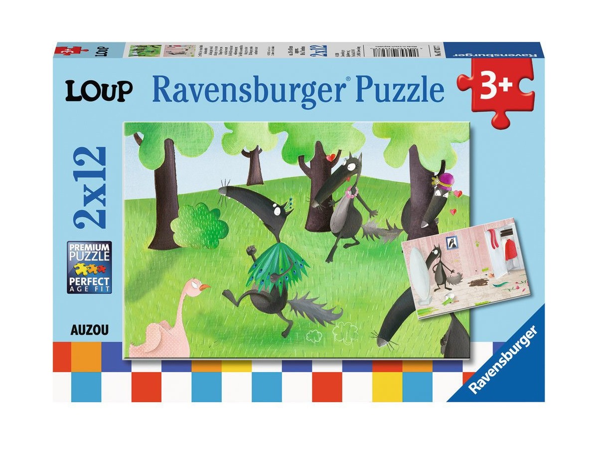 Ilustrația digitală cu tematică de animale din desene este realizată într-un stil caricatural amuzant, folosind culori vesele și un desen simplificat, dar expresiv. Puzzle-ul Ravensburger - Loup, 2x12 piese (07627) promite ore distractive petrecute în familie sau alături de prieteni, căutând și potrivind fiecare piesă pentru a completa imaginea finală.