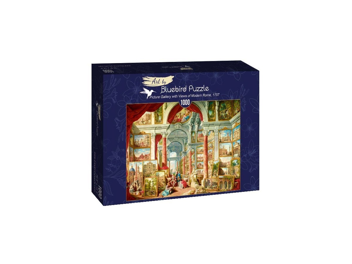 Brandul Bluebird este cunoscut pentru calitatea superioară a produselor sale și pentru ilustrațiile captivante, care îmbină frumusețea artistică cu complexitatea tehnică. Puzzle-ul pentru adulți Picture Gallery with Views of Modern Rome, 1757 este o alegere excelentă pentru cei care apreciază arta clasică și detaliile rafinate.