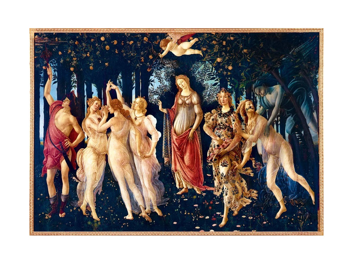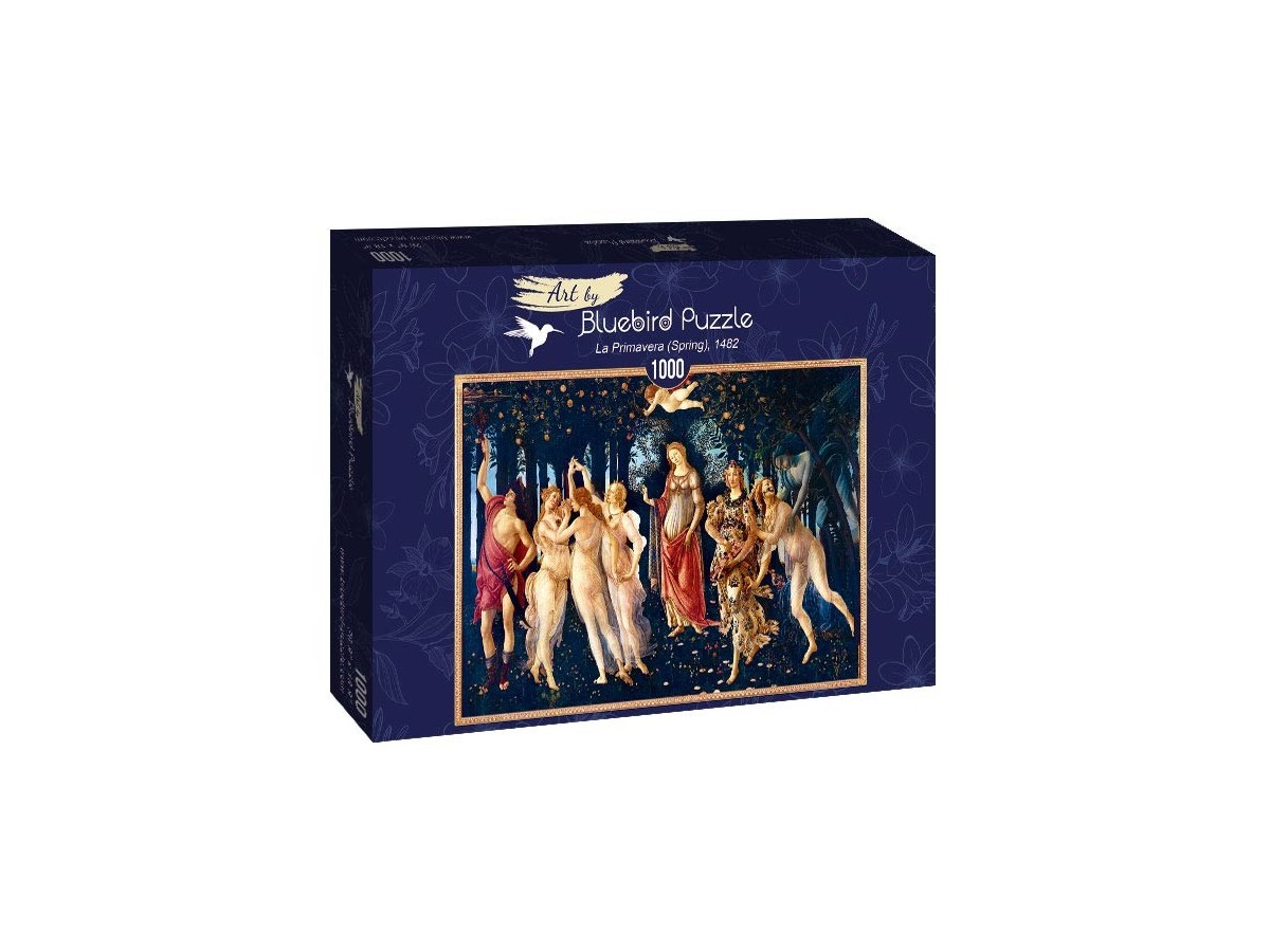 Puzzle-ul cu 1000 de piese 'La Primavera' redă o capodoperă a lui Sandro Botticelli, pictată în anul 1482, ce ilustrează o scenă plină de simbolism mitologic, emblematică pentru Renașterea italiană. În centrul compoziției se remarcă figura zeiței Venus, emanând armonie și frumusețe, veghind asupra întregii scene. În jurul ei, nouă personaje mitologice, precum cele trei Grații, dansează în voaluri diafane, adăugând o notă de grație și ritm tabloului. Flora, zeița florilor, se pregătește să împrăștie flori primăvăratice, completând peisajul luxuriant, în timp ce Mercur, cu toiagul său, alungă norii de pe cer, protejând astfel grădina înfloritoare.
