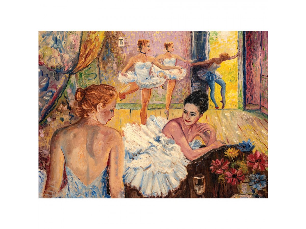 Imaginea puzzle-ului Anatolian cu 1000 de piese, intitulat Ballet Studio, surprinde o scenă dintr-un studio de balet. În prim-plan, o balerină cu un costum alb, bogat ornamentat, se odihnește lângă o masă cu flori vărsate. Alături, o altă dansatoare cu părul castaniu și îmbrăcată în albastru stă cu spatele, privind spre fereastră. În fundal, trei balerine se pregătesc, două exersând mișcările brațelor și cea de-a treia ajustându-și poziția. Scena este învăluită într-o lumină caldă, probabil de la sfârșitul zilei, care pătrunde prin fereastra mare, vopsind pereții în tonuri de galben și portocaliu.