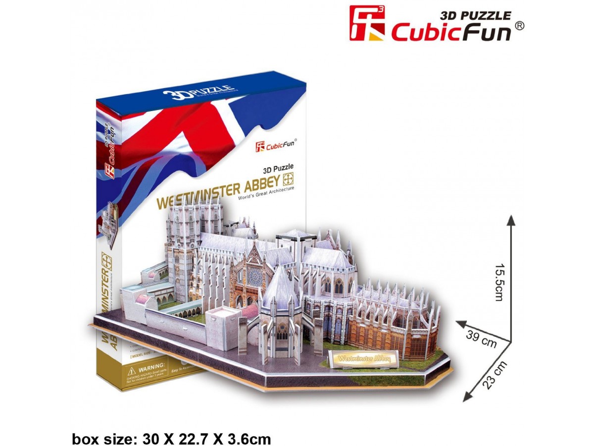 Puzzle 3D Cubic Fun - United Kingdom:Westminster Abbey, 145 Piese (Cubic-Fun-Mc121H)