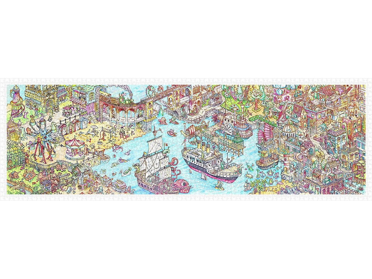 Puzzle panoramic din plastic Pintoo - Tom Parker:Dino City and Bay, 2000 Piese (H1954)