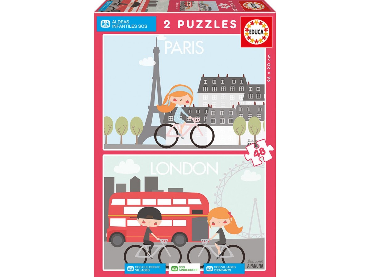 Puzzle Educa - Paris & London, Apanona -Sos Children's Villages, 2X48 Piese (17726)