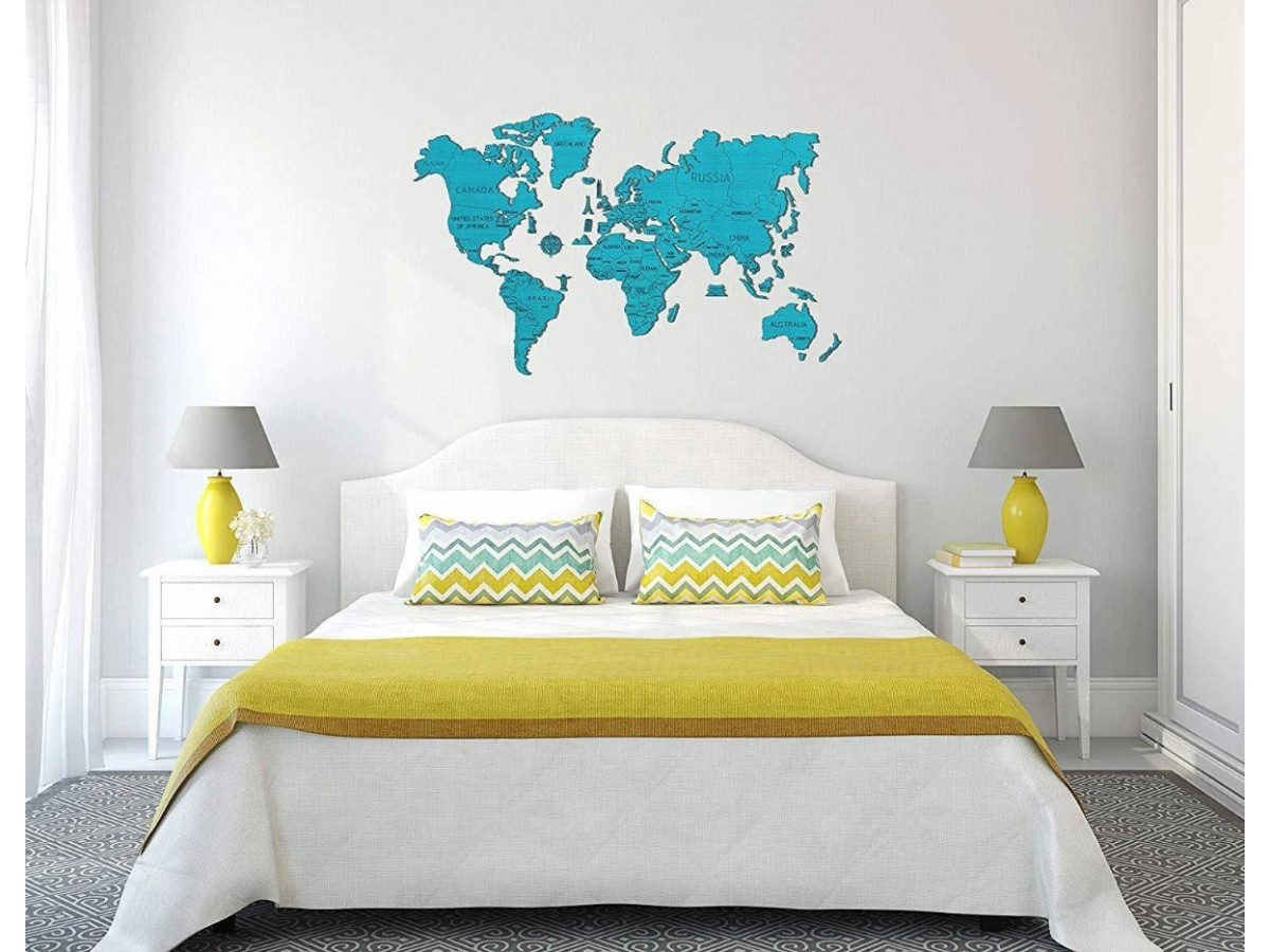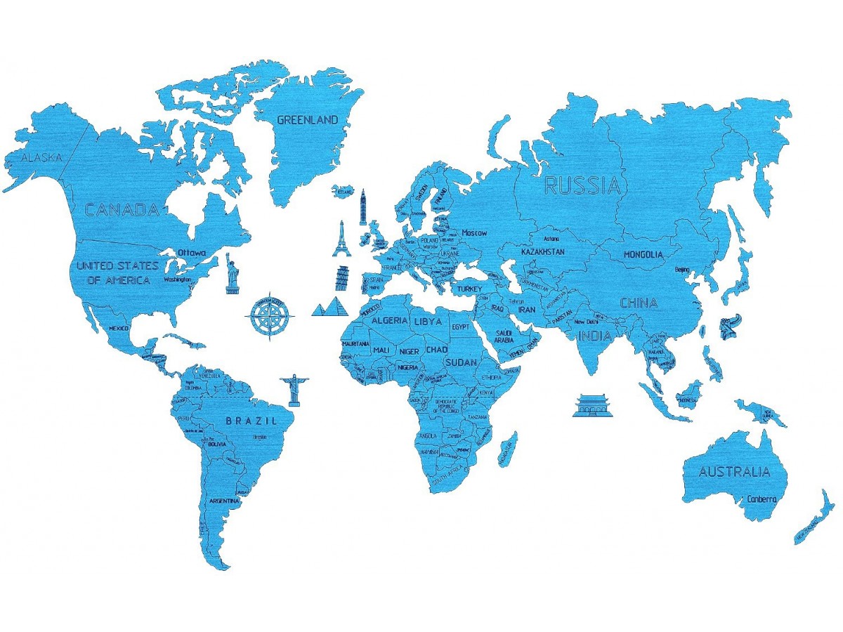 Puzzle din lemn Wooden.City - World Map XL (Cyan), 48 piese (Wooden-City-WM504/3-8299)