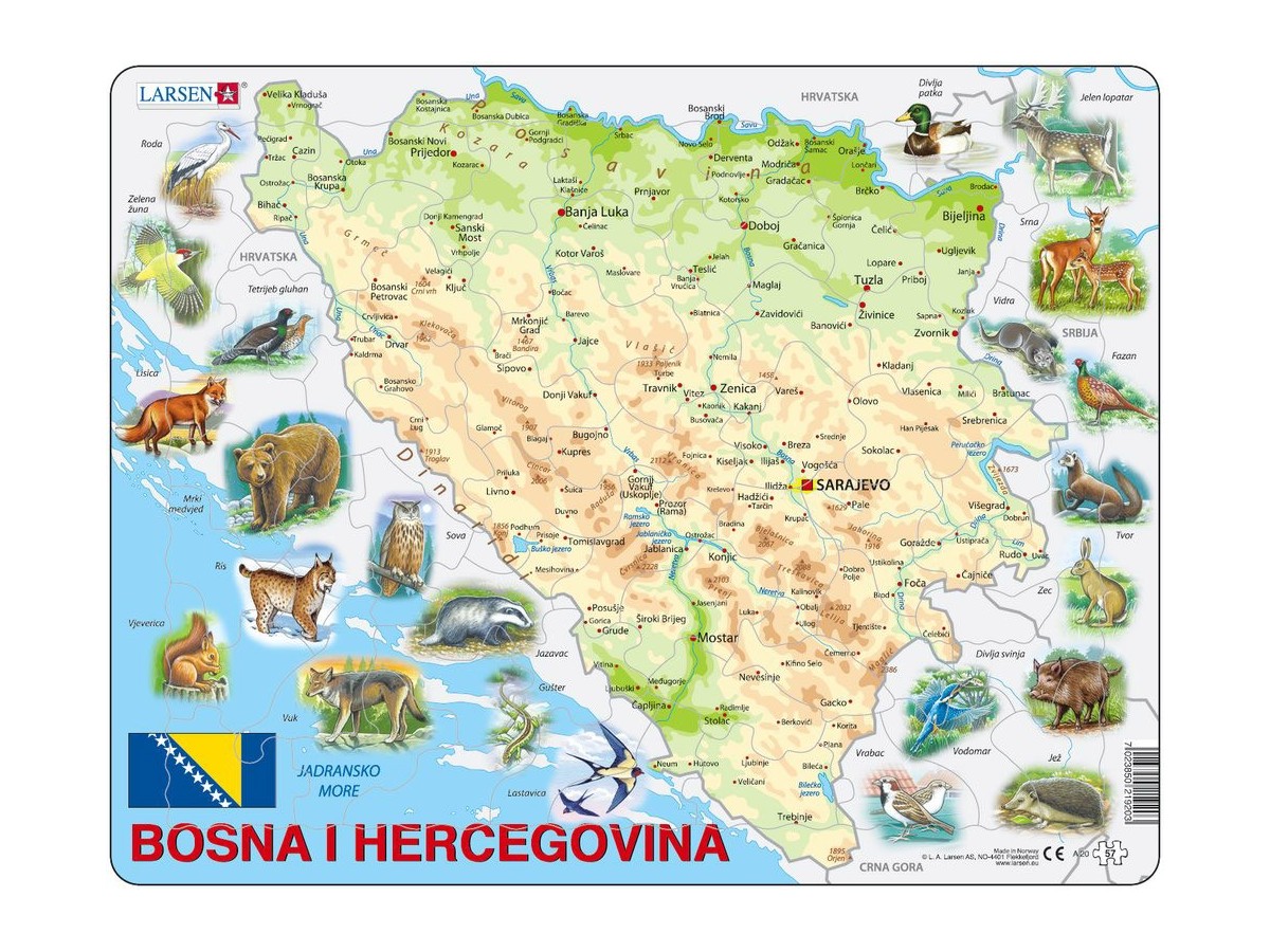 Puzzle Larsen - Bosnia and Herzegovina with Animals, 57 Piese (48365)