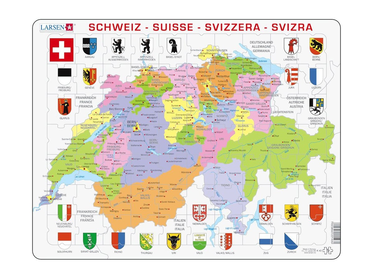 Puzzle Larsen -Political Map of Switzerland, 70 Piese (48527)