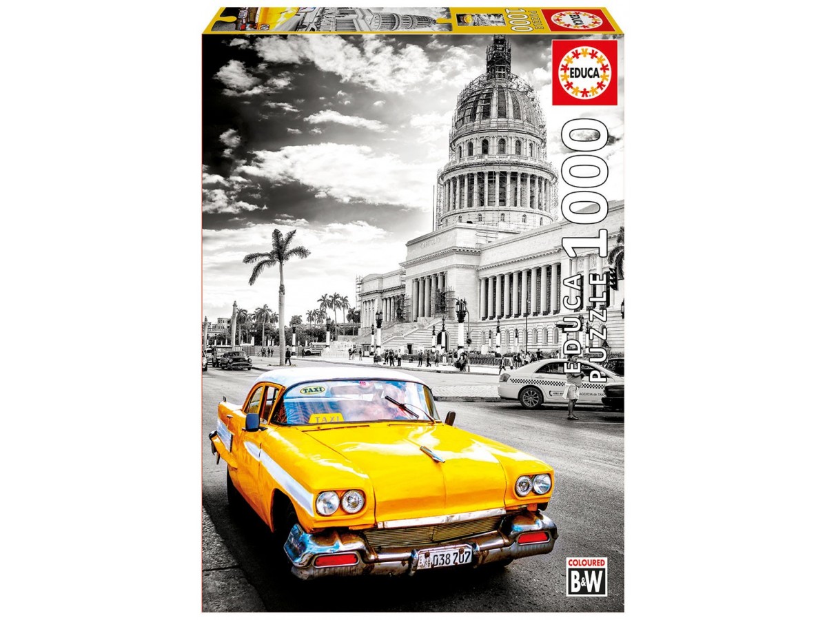 Puzzle Educa -Taxi in La Havana, Cuba Coloured Black & White, 1000 Piese, Include Lipici Puzzle (17690)