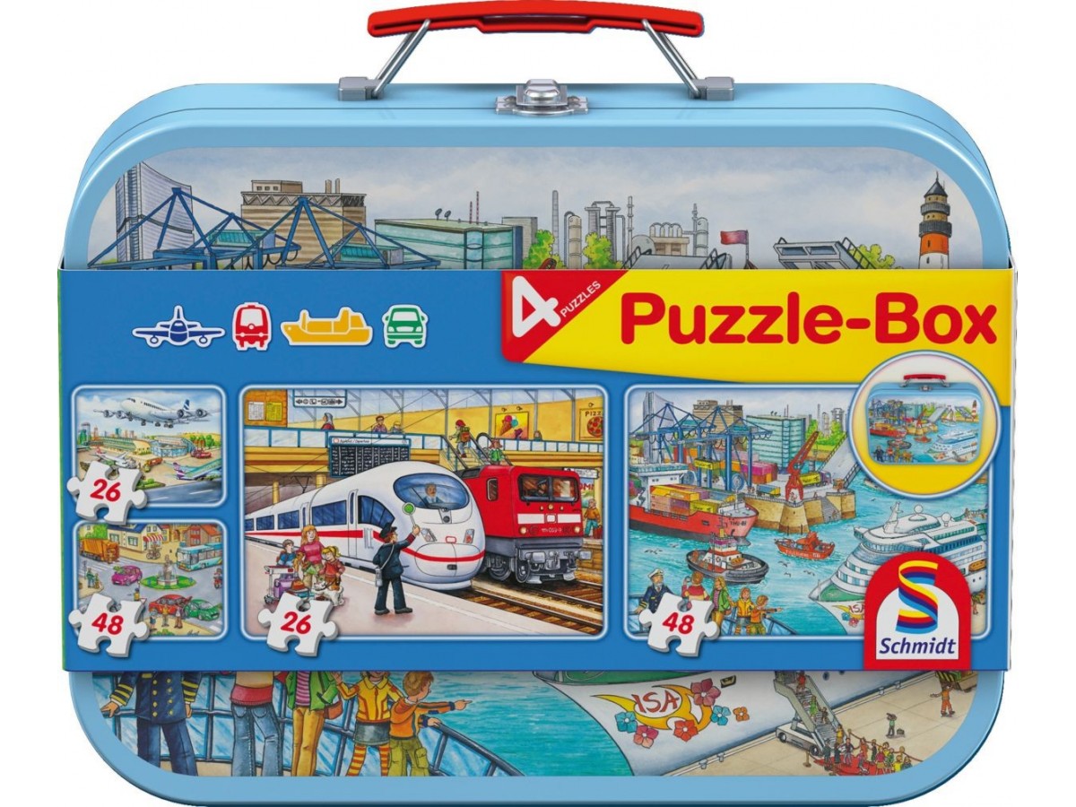 Puzzle Schmidt -Vehicles, 2X26 + 2X48 Piese, Cutie Metalica (56508)