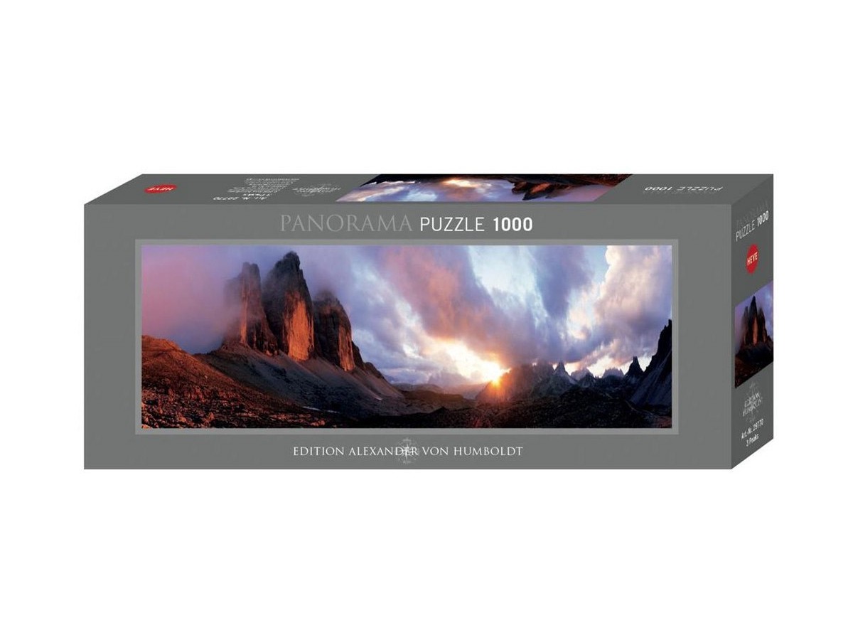 Această capodoperă a puzzle-ului Heye cu 1000 piese este destinată exclusiv adulților, oferind o provocare complexă și satisfăcătoare pentru pasionații de puzzle-uri. Cu dimensiunile sale de 33 x 95 cm, acest puzzle panoramic 3 Peaks (57728) va aduce în casele celor care iubesc munții o experiență captivantă de asamblare.