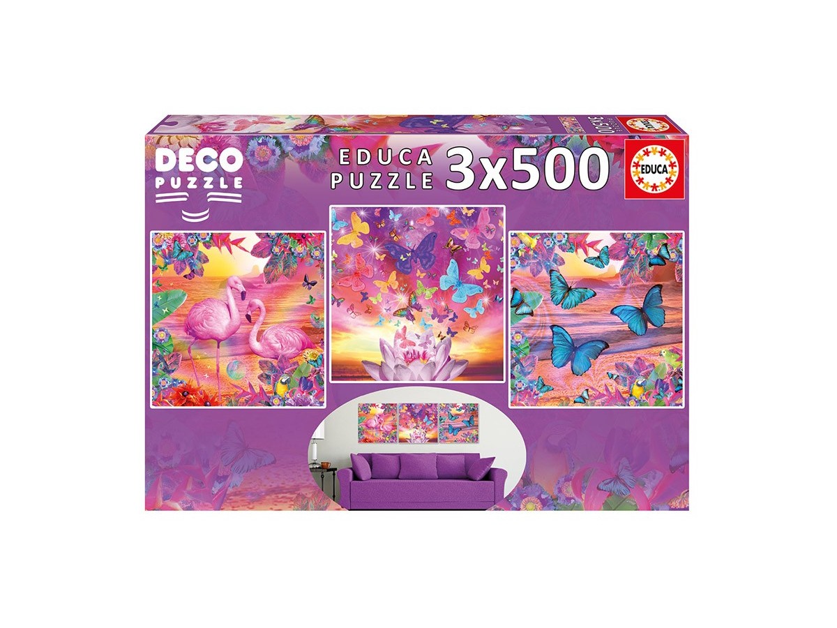 Puzzle Educa -Tropical Views, 3X500 Piese, Include Lipici Puzzle (17688)