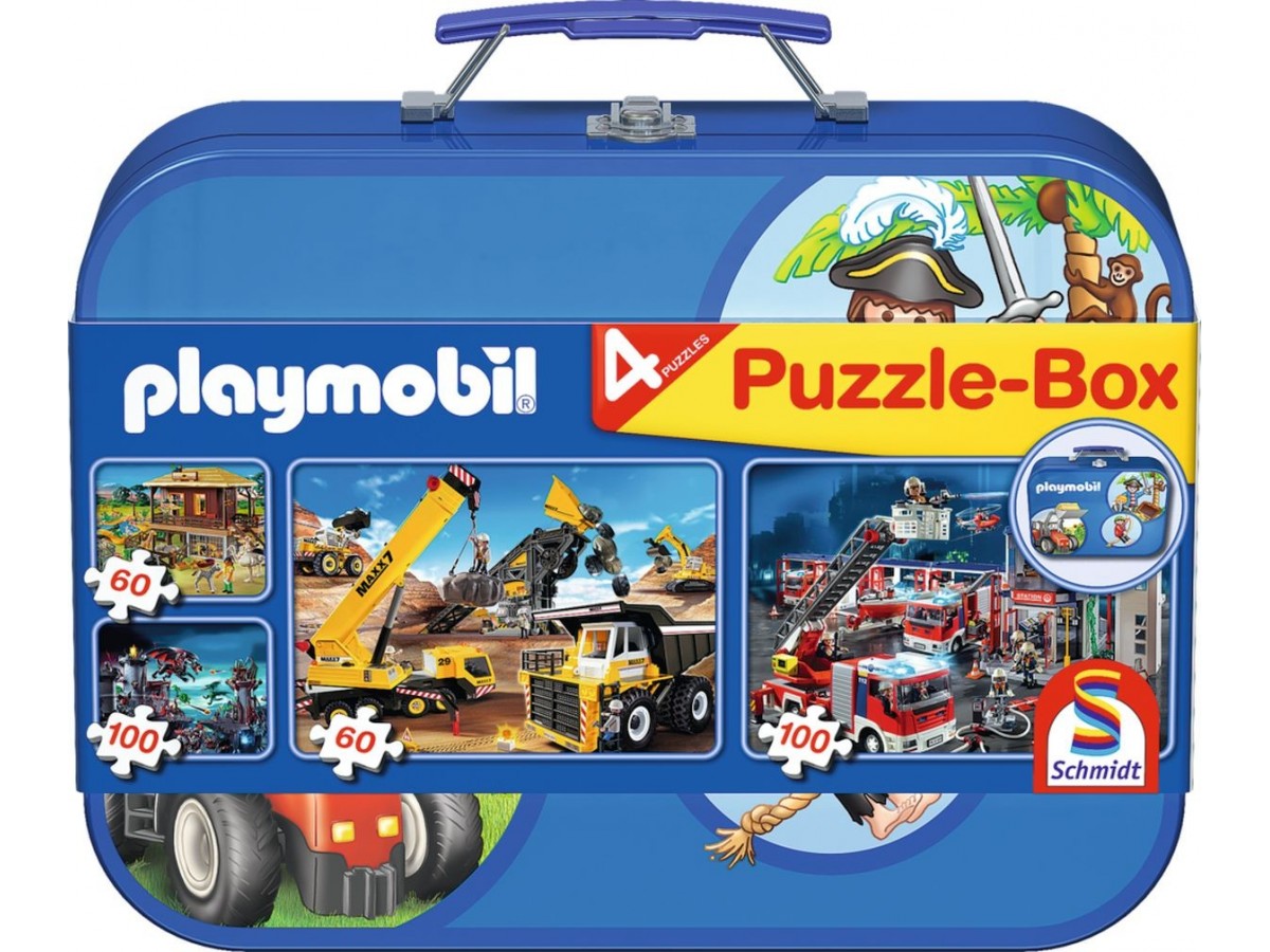 Puzzle Schmidt -Playmobil, 2X60 + 2X100 Piese, Cutie Metalica (55599)