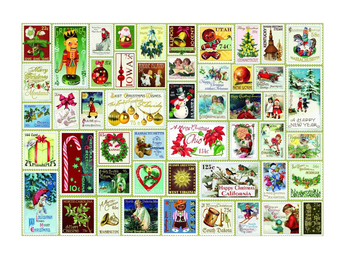 Puzzle 1000 piese - Christmas Stamps (Bluebird-Puzzle-70488)