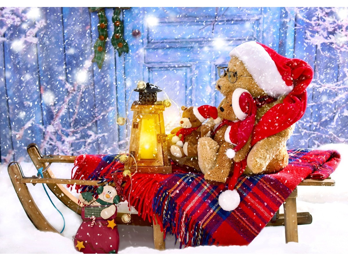 Puzzle 1000 piese Enjoy - Teddy Bears with Santa Hats + folii pentru lipit puzzle (Enjoy-5269)
