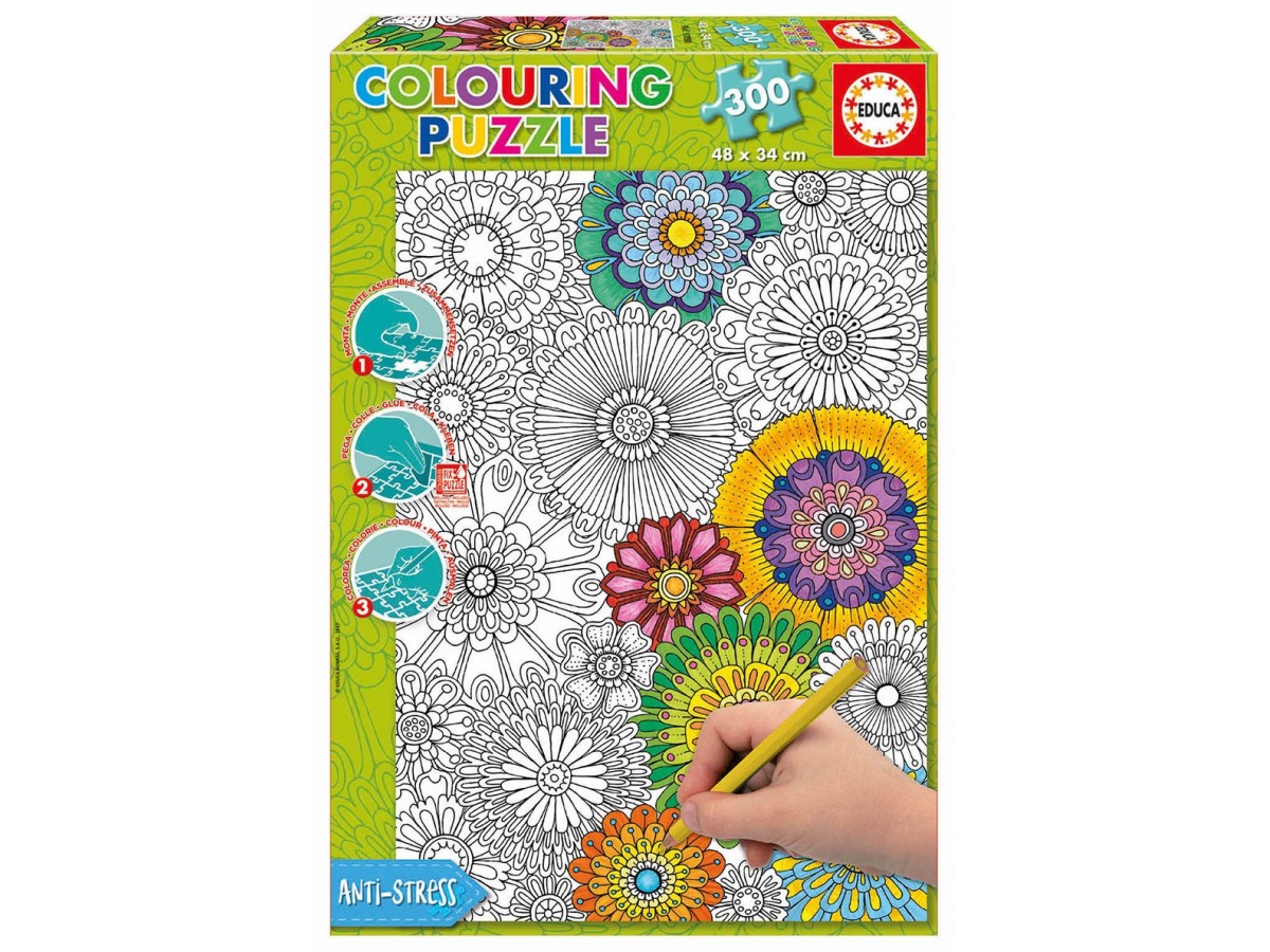 Puzzle de colorat Educa -Big Beautiful Blossoms, 300 Piese, Include Lipici Puzzle (17090)