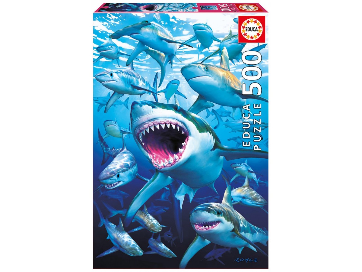 Puzzle Educa -Sharks, 500 Piese, Include Lipici Puzzle (17085)