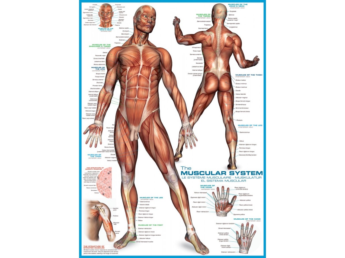 Ilustrația digitală detaliată a sistemului muscular uman este perfect reprodusă în acest puzzle cu 1000 de piese, oferind o privire amplă și detaliată asupra anatomiei umane. Fiecare element al musculaturii este prezentat într-un mod educativ și captivant, fiind un instrument util pentru studiul și înțelegerea corpului uman.