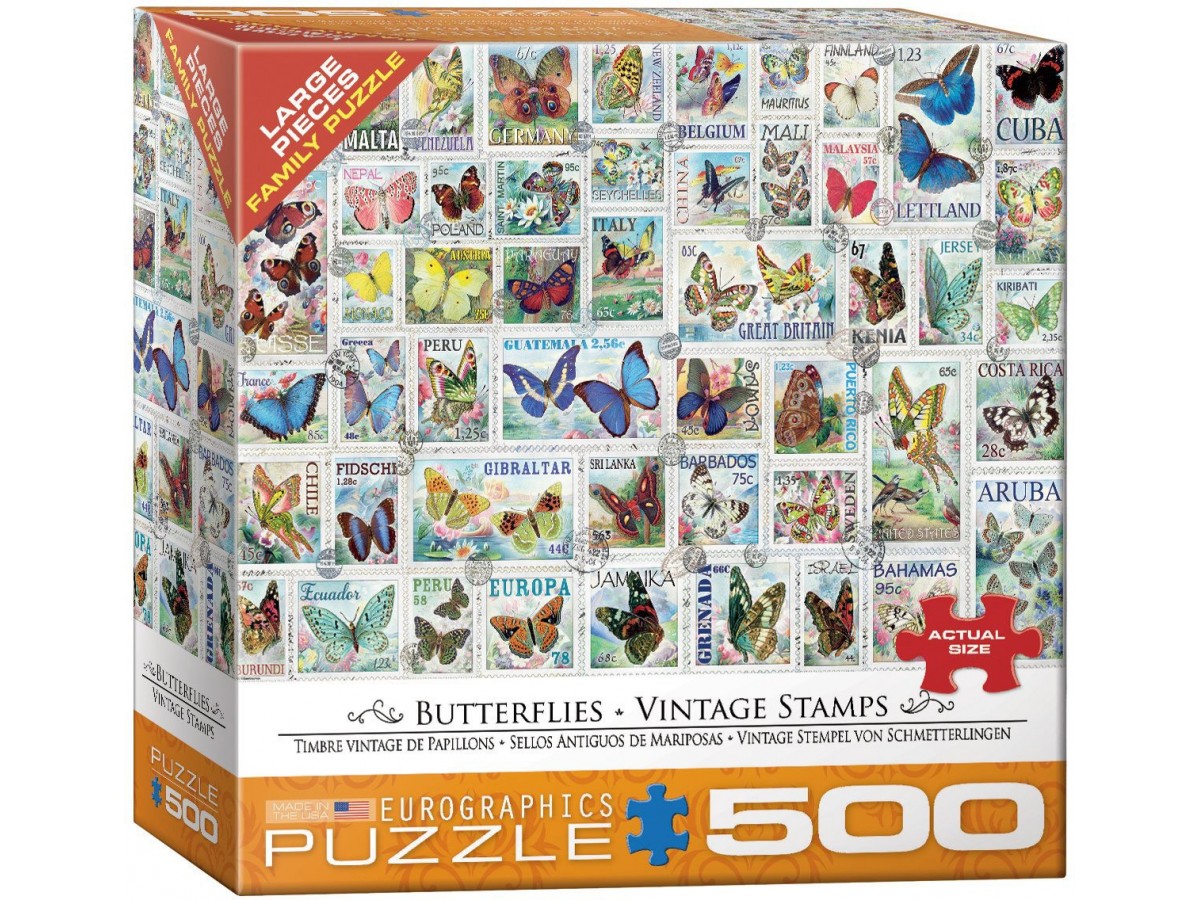 Puzzle Eurographics - Vintage Stamps - Butterflies, 500 piese XXL (8500-5356)