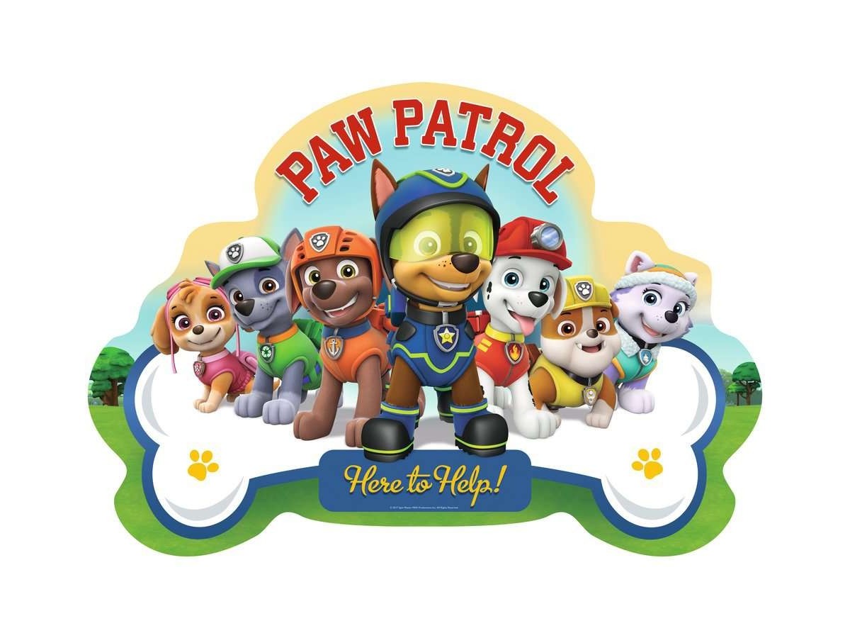 Scena ilustrată înfățișează un grup de șase cățeluși eroi, fiecare purtând echipament specific unor profesii precum pompier, polițist și pilot, situându-se într-un peisaj primăvăratic, luminos, cu iarbă verde în fundal. Aceștia sunt personajele principale din seria animată Patrula Cățelușilor, o producție populară dedicată publicului tânăr. Prezența lor în uniforme colorate și expresiile entuziaste subliniază temele de aventură și camaraderie care domină desenul animat. Ilustrația este realizată în stil digital, cu linii clare și culori vii, specifică lucrărilor contemporane destinate copiilor.